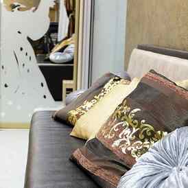 Тема золота элегантно раскрыта в стильном интерьере: кованые детали, блестящие ткани, доминирующие оттенки состаренного золота, позолоченные рамки, хрустальные люстры, вазы — все создает атмосферу современного королевского дворца.